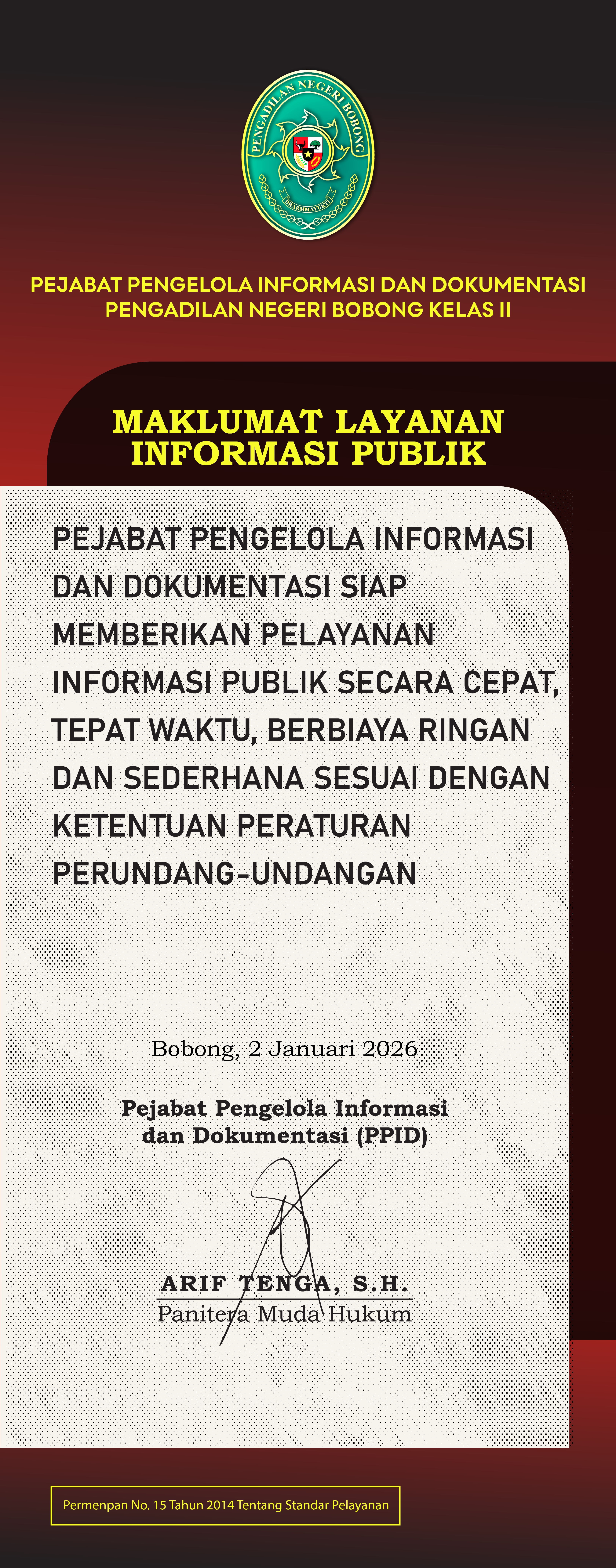 Selamat Datang di Website Pengadilan Negeri Bobong Kelas II.